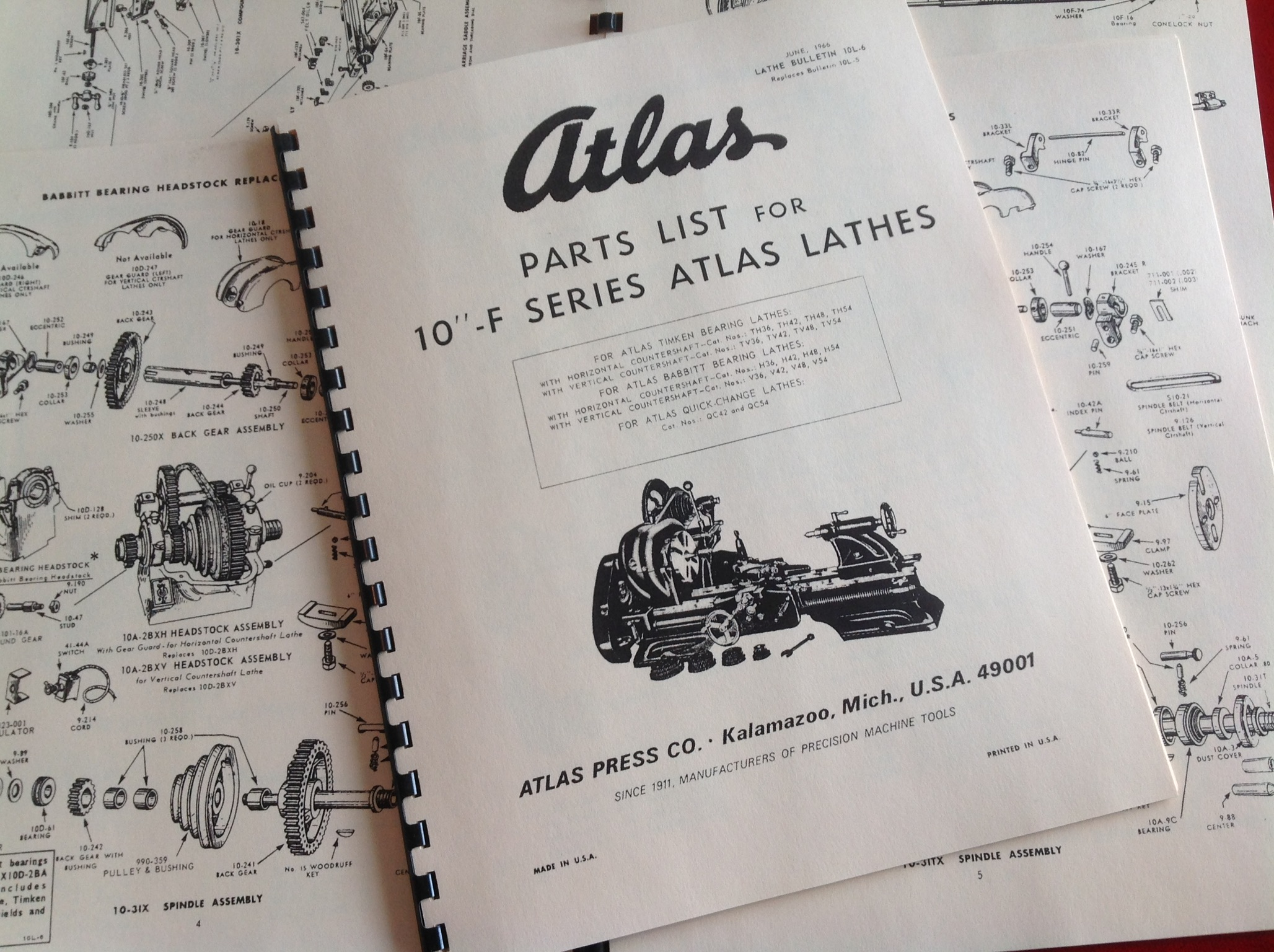 This is the parts manual for the 10″ F series lathes. It contains the 12 pages of information which originally came with this lathe. We have printed it on heavy ivory card stock with a comb bunding so it will withstand the abuse it will receive in the workshop. It contains a complete parts list and exploded views which were supplied with the machine as well as the threading chart. This is a reproduction which has been digitally edited to enhance it’s quality. Made in the USA.