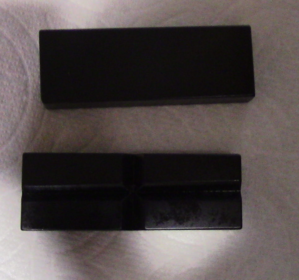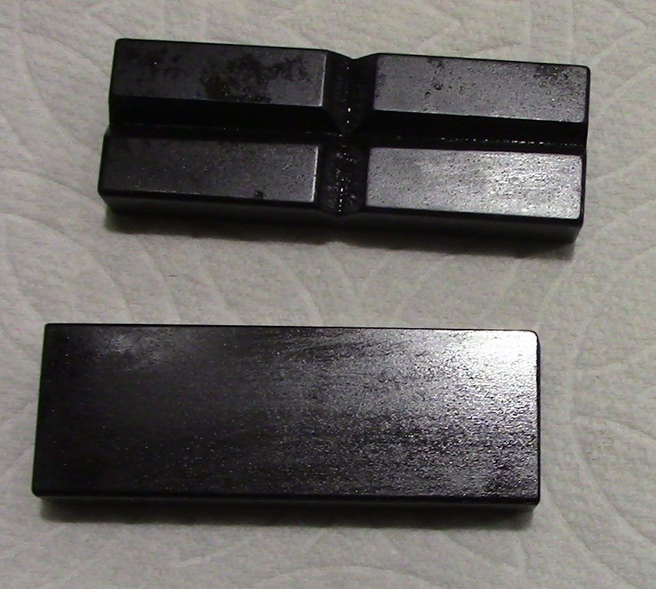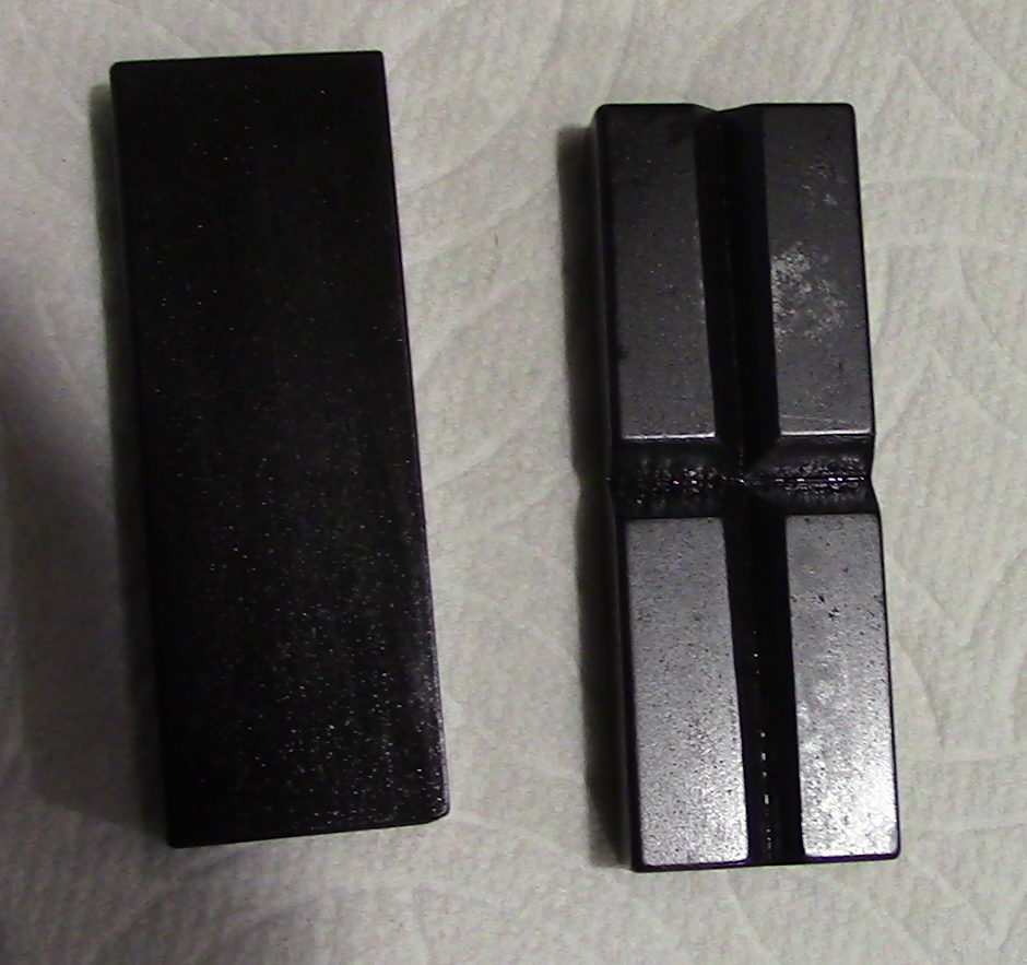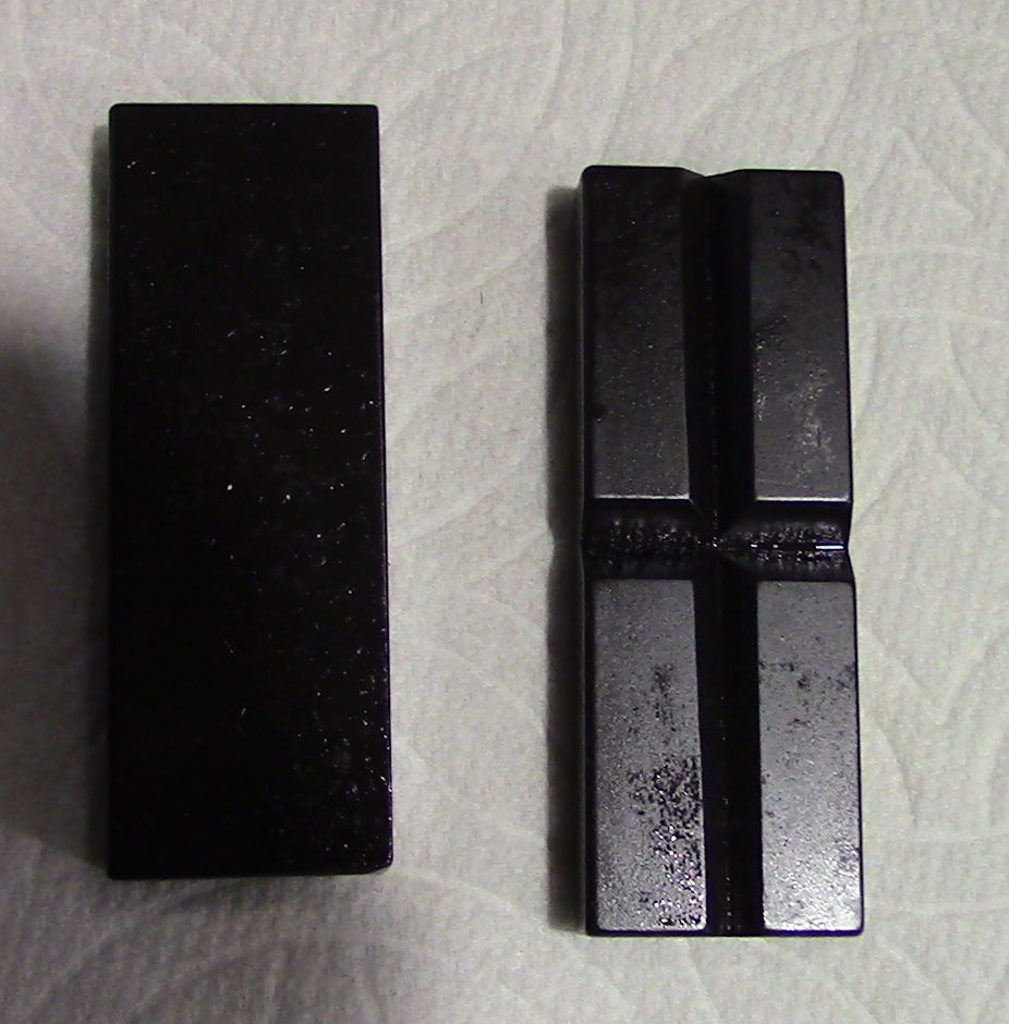 This is a replacement set of vise jaws for the 6″ M6-500A milling attachment. This is a set of replacement jaws only and does not include the milling attachment. This set of jaws is for the 6″ milling attachment and are machined from steel as was the original offering from Atlas. They have been bead blasted or tumbled to give them a matte finish and have then been run thru my hot bluing tanks to give them a blue to black finish as would be found on a firearm. There is one flat block and the other has V-groves, one horizontal and the other machined vertical for holding round stock. included is one set which consists of one flat and one V Jaw.