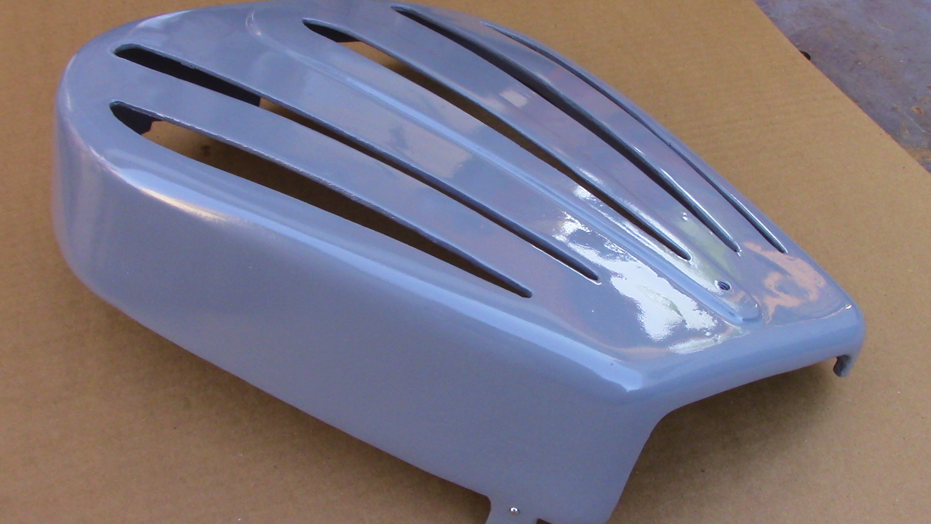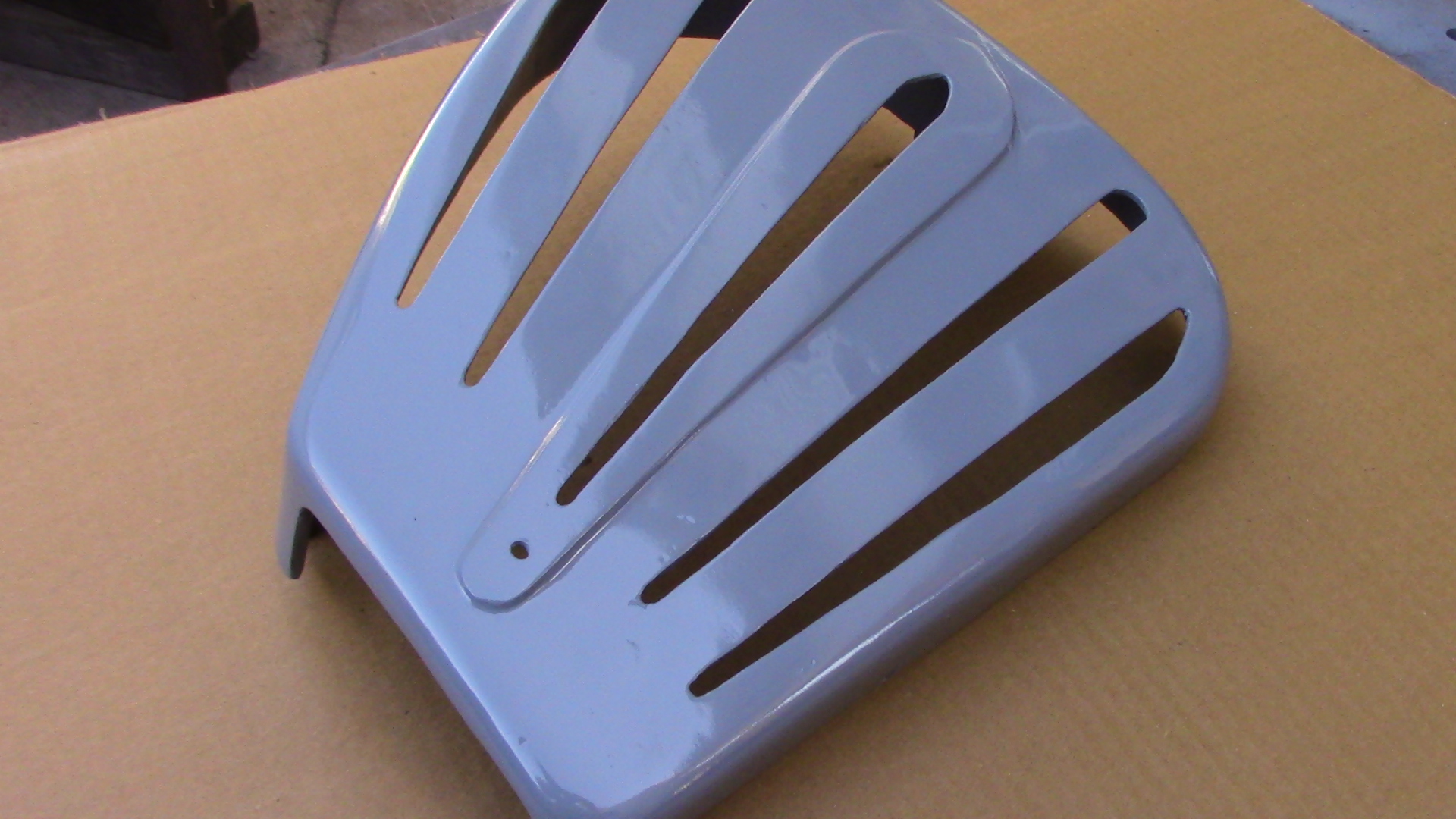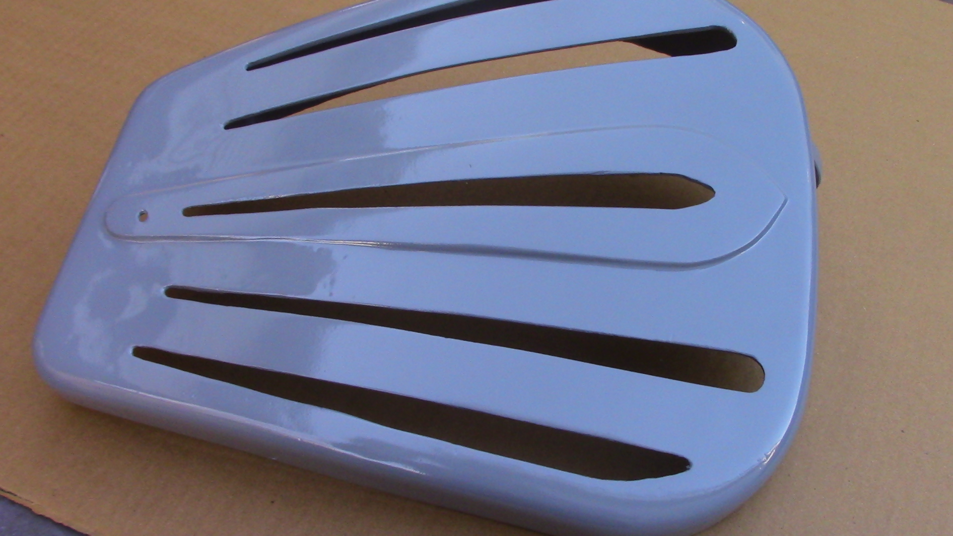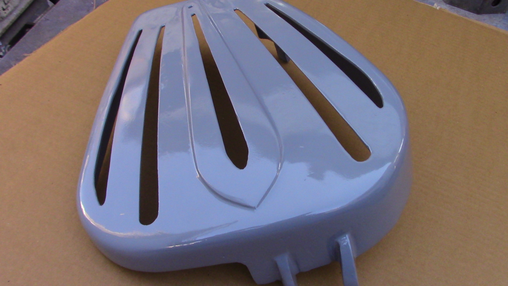 This is the large guard that fits on the right side of the shaper and covers the drive belt and pulleys. This is a newly manufactured part which we cast in aluminum as these parts are no longer available from the manufacturer. This casting may take up to 7 business days to ship once ordered, at this time if they show in stock I have a casting done but it may not yet be machined and painted. Once I have caught up on all my castings they will hopefully be available for immediate shipment.